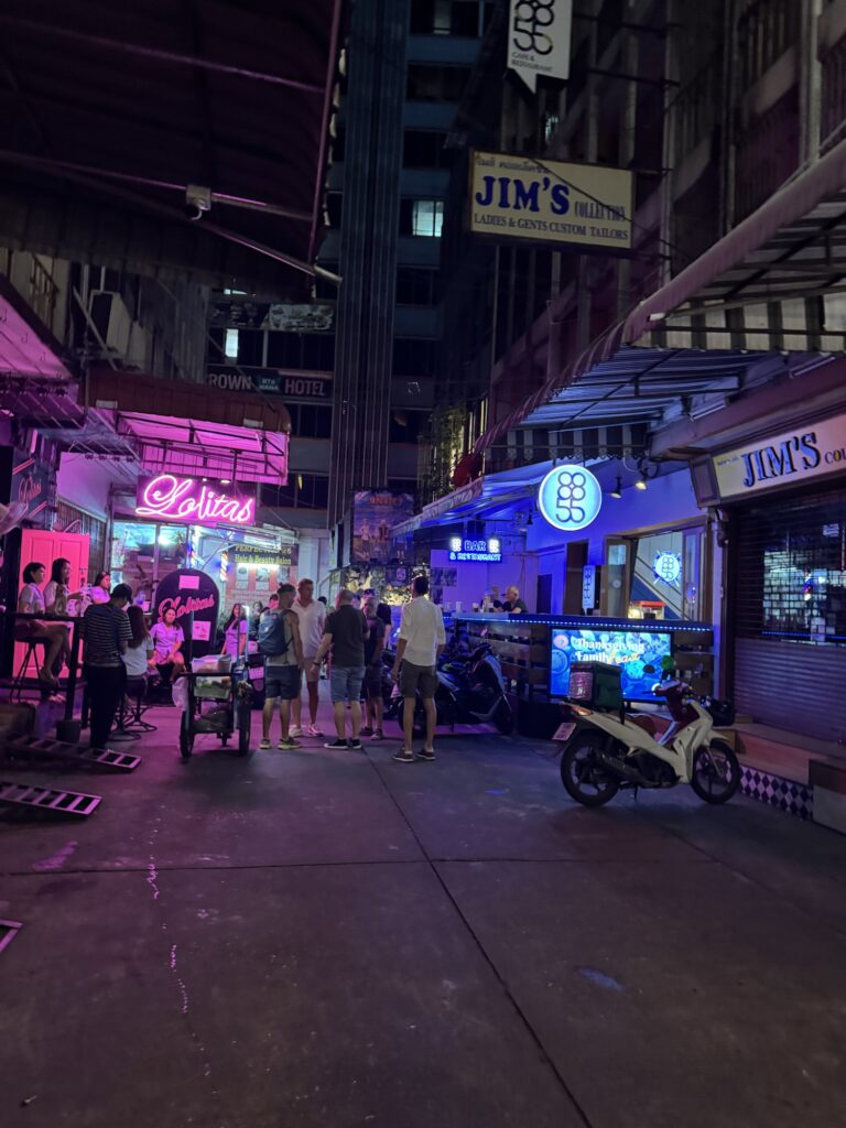 賑やかなバーやマッサージ店が並ぶ大人の夜遊びエリアですが、その喧騒を通り抜けた奥に店はあります。