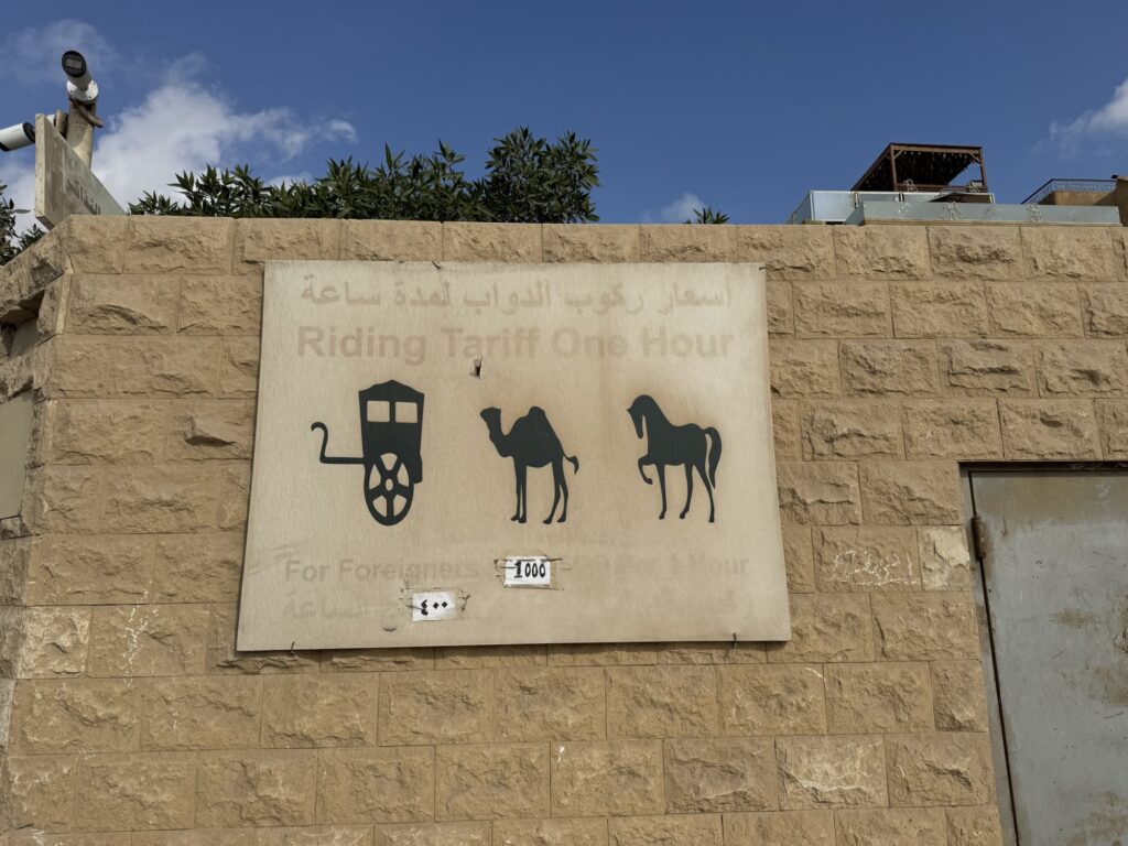 ピラミッド敷地内(スフィンクス付近など)にはエジプト政府の公式料金看板があります。必ずこれを確認してから交渉しましょう。